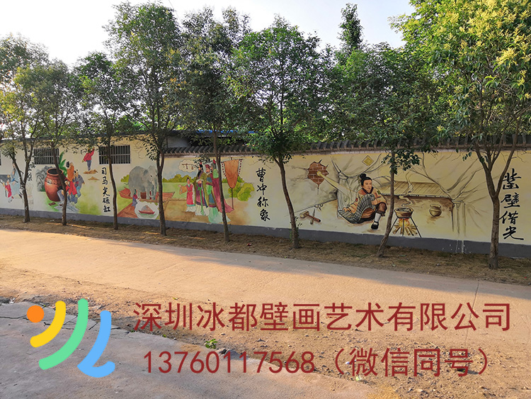 校长看到效果后,决定画更多的故事。中山学校围墙成语彩绘不仅美化了校园环境,更在无形中传承了民族文化,让每一位走进学府的人都能感受到其中的内涵,讲述着关于求知、坚韧与传承的不朽篇章。冰都壁画公司