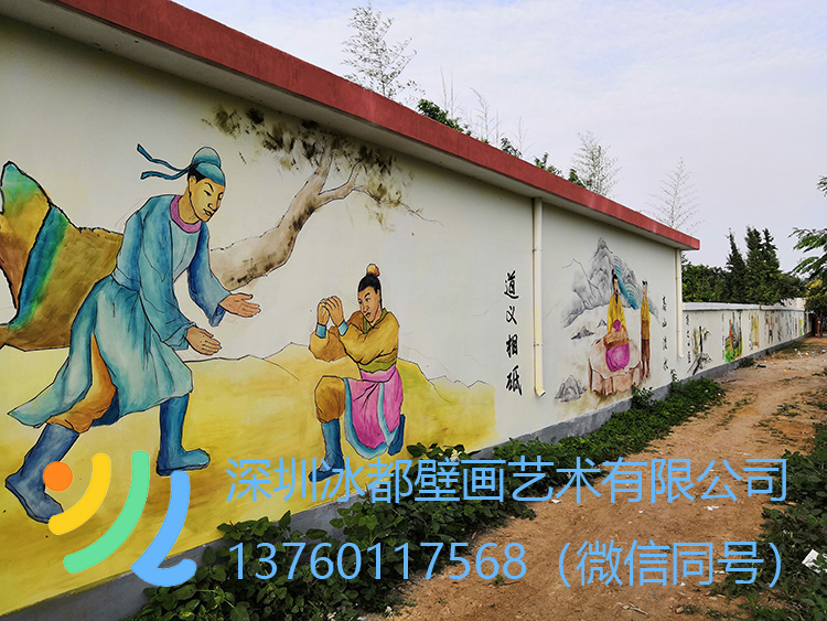 江门围墙成语彩绘位于喧嚣都市的一隅,将古老故事生动地呈现,让人在漫步间,便能感受文化弥新。“道义相砥”源自《汉书·刘向传》,这一主题意思是选择朋友要结交在学业和道义都可以坦诚相待,朋友之间以正道相互砥砺,共同进步。对于朋友的错误和缺点直言相告,和这样的人如果成为合作伙伴,在事业上也可以互相帮助,搀扶前行。交朋友如果和这些善良的交往,在危难时也能伸出援助之手,帮助朋友度过难关。相反,那些喜欢吹捧,有利益时就靠近,有难处就挤兑,在朋友遇到危难时就会躲的远远的,甚至不仅不帮助,而且还落井下石,这样的属于损友,不可交也。在手绘围墙上,这一成语被描绘成一幅生动的画面:两位书生并肩坐于石上,手捧书卷,目光坚定而充满希望;一旁,溪流潺潺,寓意着知识的滋养与时间的流逝。这些画面不仅美化了环境,更让每一个路过的人都能停下脚步,细细品味其中的寓意。